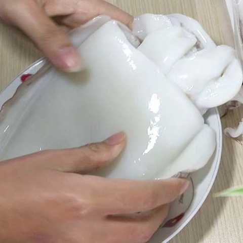Mực nang mua về rửa chung với rựu để mùi tanh bới đi, sau đó rửa lại bằng nước sạch 2 ần, để ráo.