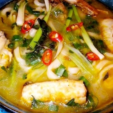 – Nước mắm, gia vị lẩu thái, bắp chuối, hành tím, rau muống cọng