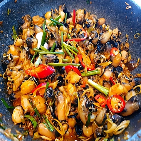 Cồi hàu điếu thiên nhiên một loại ốc, với cái vỏ xù xì khá hiếm vì chúng sống ở các rạn san hô hóa thạch, thịt ngọt, thơm và giòn sần sật.