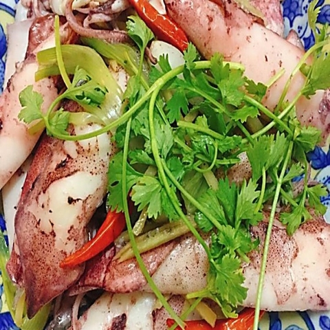 mực hấp bắt mắt tươi ngon