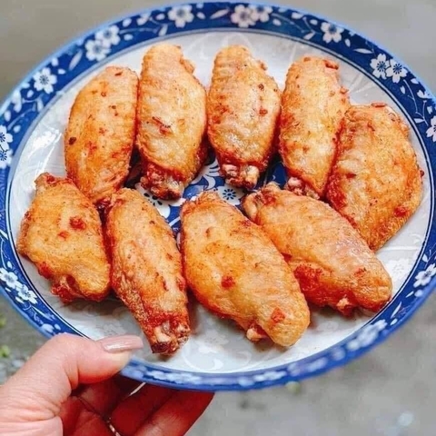 Cánh gà giữa mua về rửa sạch, chà qua một ít muối và rửa lại, để ráo ướp cùng, hạt nêm, dầu hào, nước mắm, nước cốt hành tím để 45 phút, sau đó chiên vàng.