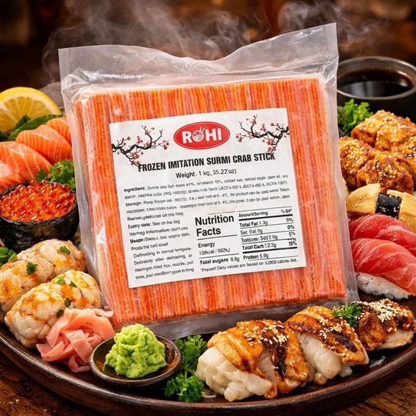 Thanh cua Rohi (Surimi hương cua) là nguyên liệu "quốc dân" trong các gian bếp hiện đại và thực đơn nhà hàng. Được sản xuất từ thịt cá biển xay nhuyễn kết hợp với hương vị cua tự nhiên, thanh cua Rohi sở hữu màu đỏ cam bắt mắt, thớ thịt dai nhẹ, mềm mọng và vị ngọt thanh dễ ăn.